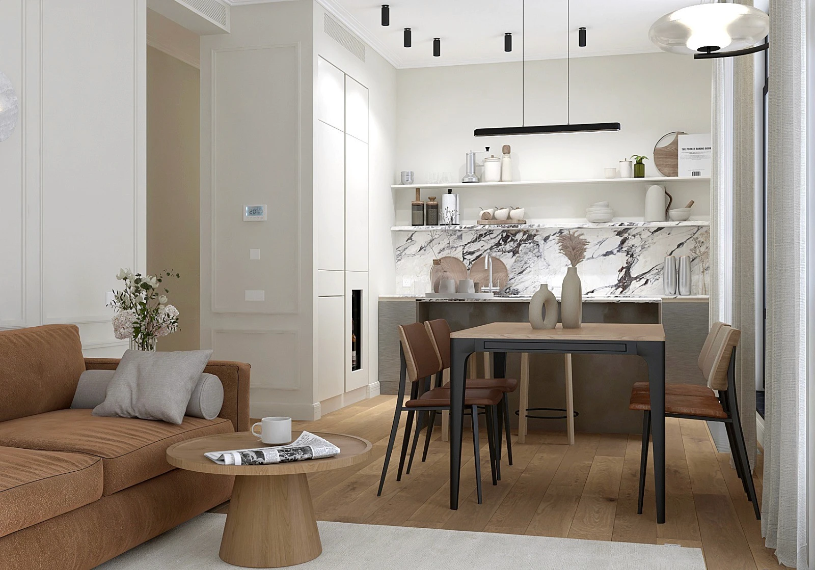 Мы проектируем интерьеры, которые остаются актуальными годами. Каждое решение — осмысленное, функциональное и визуально выверенное.